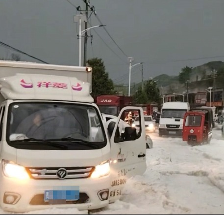 20日,网友“背砖苗哥”告诉记者,19日自己在金盆乡天生桥参加“三月三”民俗文化活动。“白天温度还有25 ℃左右,到了四五点就开始下冰雹。”从他拍摄的现场视频来看,金盆乡的山野间白茫茫一片,仿佛冬季。路面上则有厚厚的冰雹,很多车辆都停了下来,无法通过,“厚度大约是10-20厘米。”“背砖苗哥”表示,当天下午6点冰雹就停了,当地组织了铲车在清理路面。