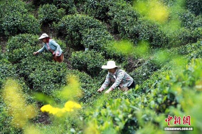 4月17日,湖北省宜昌市夷陵区太平溪镇,茶农在生态茶园里采摘“谷雨茶”。 李重庆 摄华中农业大学植物科学技术学院副教授蒯婕向中新社记者介绍,谷雨时节降水日增,北方沃野小麦拔节孕穗,南方水田早稻浸种落秧,小麦、稻米皆为谷物,故有“雨生百谷”“时雨乃降,五谷百果乃登”之意。
