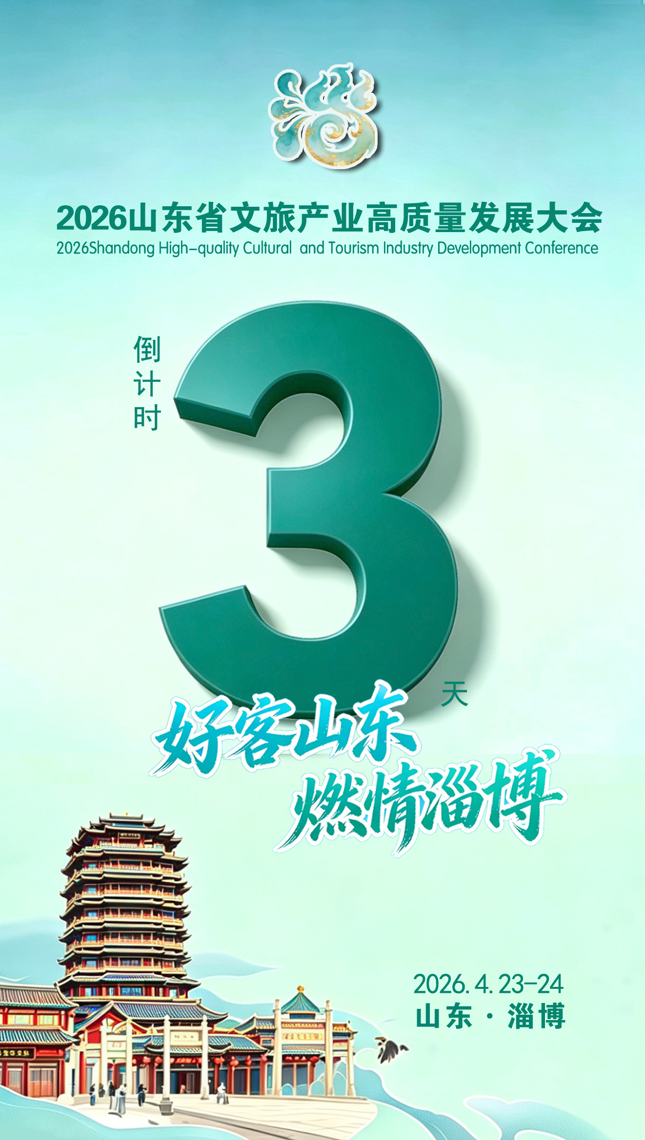 倒计时3天!2026山东省文旅产业高质量发展大会将在淄博召开今日淄博 | 2026-04-20 14:38:30 微信扫码扫码下载客户端2026山东省文旅产业高质量发展大会将于4月23日至24日在淄博举行。责任编辑:翟超群