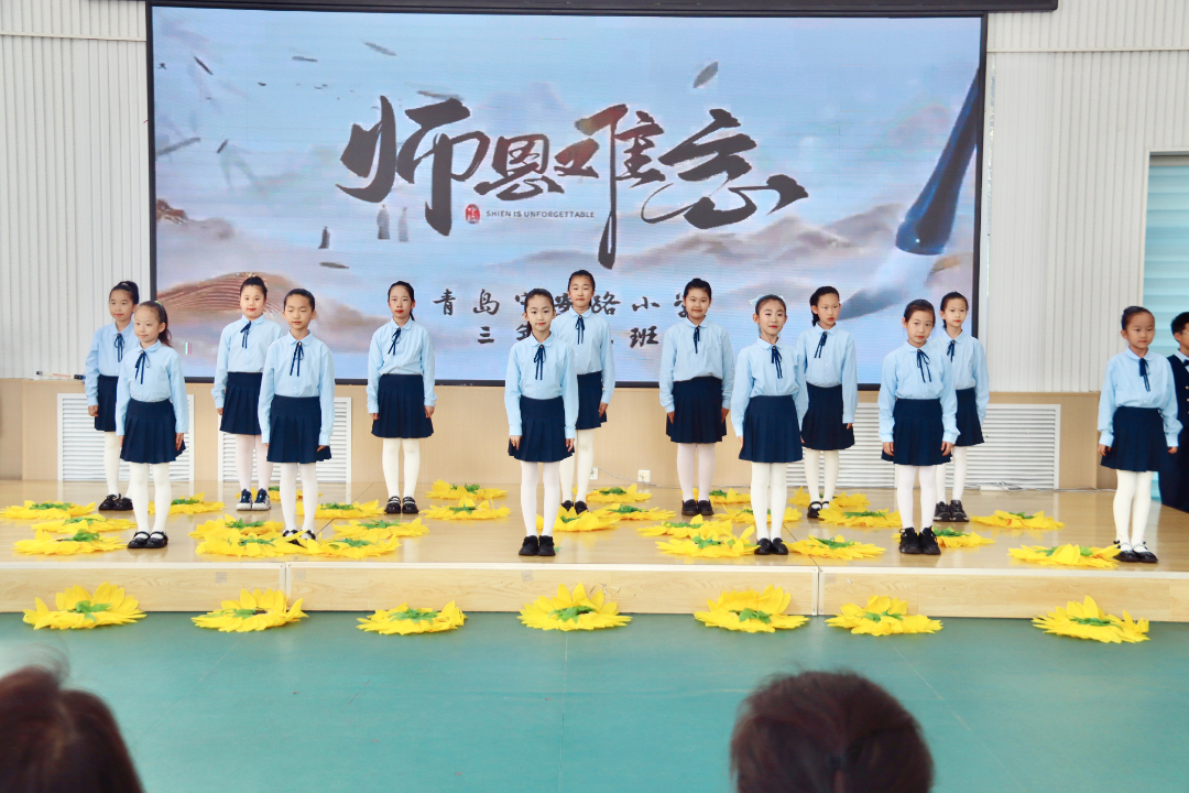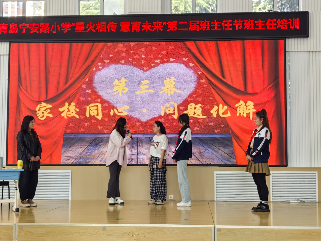 活动在青岛宁安路小学郑杰老师与三年级3班全体学生带来的节目展示《师爱润童心 致敬引路人》中拉开帷幕。师生同台用真挚的表演,生动诠释了班主任日常工作中的点滴关爱与默默守护,赢得现场阵阵掌声。这一幕,正是宁安路小学全体班主任“以爱育爱”的真实写照。