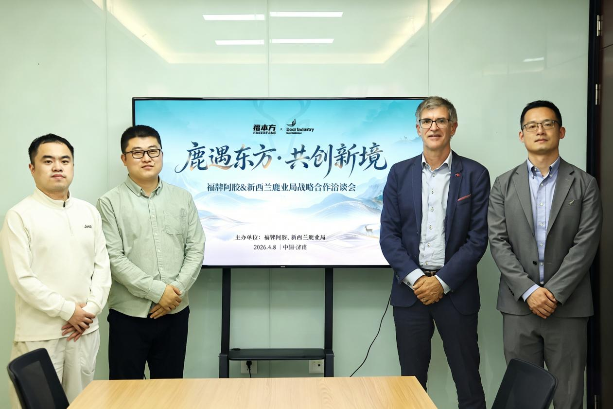 近日,中国福牌阿胶集团与新西兰鹿业局(Deer Industry New Zealand)在济南成功举行战略合作洽谈会。新西兰鹿业局市场经理Terry Meikle、市场经理沈亮到访,与福牌阿胶集团消费者事业群总经理王悦恒、福本方总监申林、品牌部总监霍苗苗等品牌核心代表进行了深入交流。双方围绕鹿肉及相关鹿制品等全品类产品的供应链协同、品牌共建及市场拓展最终达成多项战略合作共识,推动福牌阿胶集团与新西兰鹿肉产业跨境合作正式迈向全新合作阶段。
