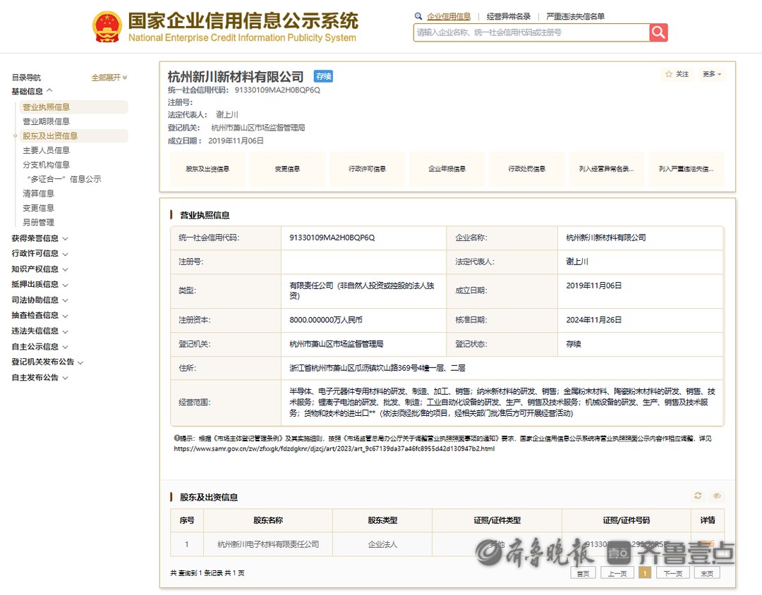 该公司由杭州新川电子材料股份有限公司(简称“新川电子”)全资控股。
