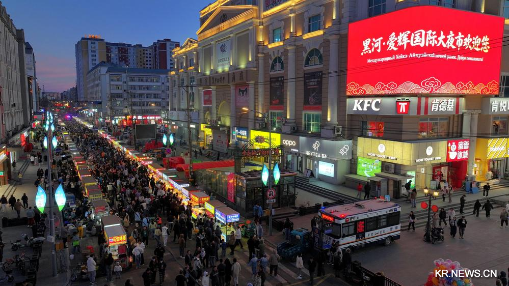 헤이룽장(黑龍江)성 헤이허(黑河)시의 헤이허·아이후이(愛輝) 국제대야시장이 새롭게 단장해 손님을 맞이했다. 중국-러시아 국경 지역에 위치한 헤이허시는 관광·쇼핑·엔터·미식을 하나로 결합한 헤이허·아이후이 국제대야시장을 통해 시민과 관광객에게 새로운 소비 경험을 제공하고 있다.