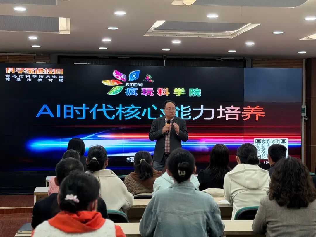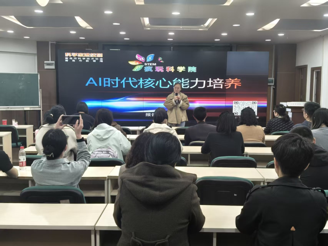 为积极响应市南区“无边界大科创”育人部署,精准把握 AI 时代教育变革新趋势,搭建家校协同育人桥梁,青岛八大峡小学精心举办家长科创讲堂。本次活动特邀市南区疯玩科学院创始人万滨老师倾情开讲,万老师以 《AI 时代核心能力培养》为主题,与家长们共话科创教育,探索面向未来的育人新路径。
