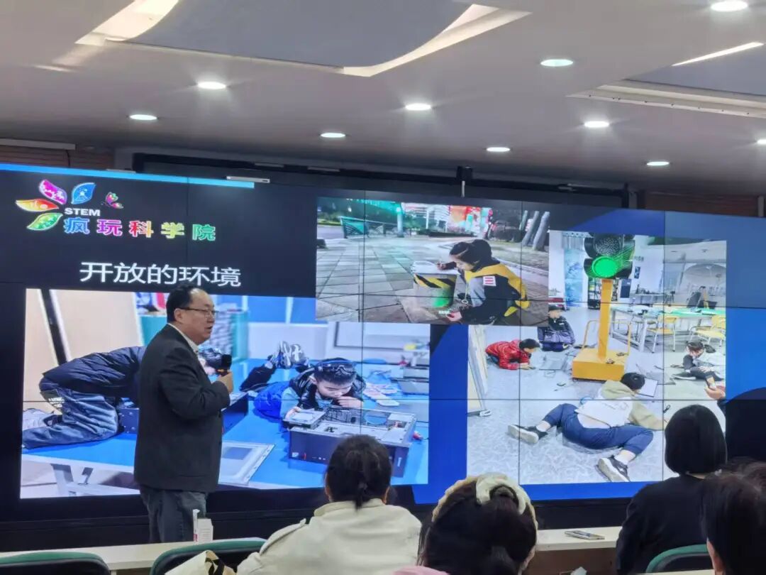 随后万滨老师聚焦 AI 时代人才发展必备素养,结合学校重点开展的项目化科创实践活动的成效,为当下家庭教育点亮成长方向。他充分肯定了学校立足学生未来发展,着力于培养学会适应未来发展需要的创新能力、问题解决能力的一系列举措,更进一步指出,创新创造能力、社会情感能力、终身学习能力的培养,将成为适配 AI 时代知识迭代的重要能力。