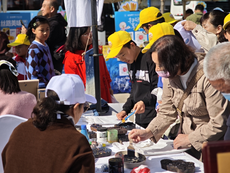 活动现场,游客体验非遗技艺模戳印花。石榴云/新疆日报记者 宋海波摄