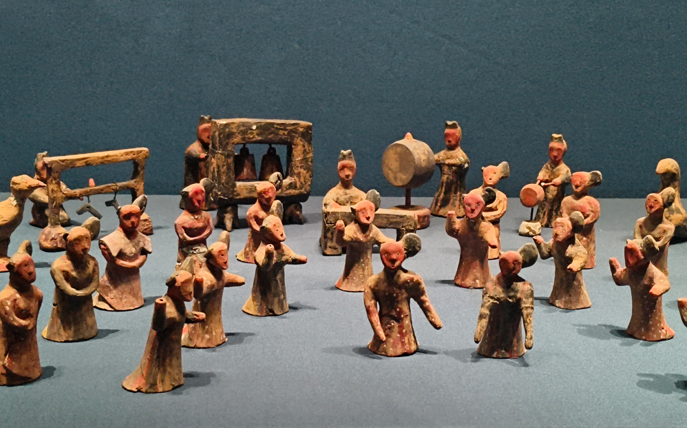 乐舞陶俑(局部),战国时期,可以看出当时人们的衣服形制。