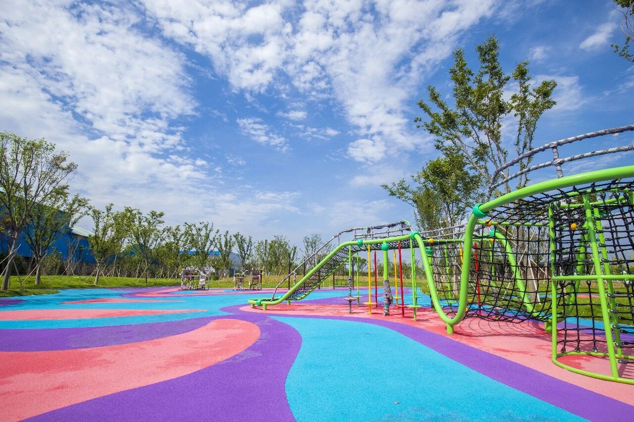 董家童趣,成长乐园。董家灵泉公园是孩子们释放天性的欢乐王国。蜿蜒的彩虹健身步道旁,滑梯、爬网等无动力设施承载着此起彼伏的笑声;同步配置的各类健身器材,则让陪伴的家长也能挥洒汗水,孩童的成长与居民的康健在此和谐相生。