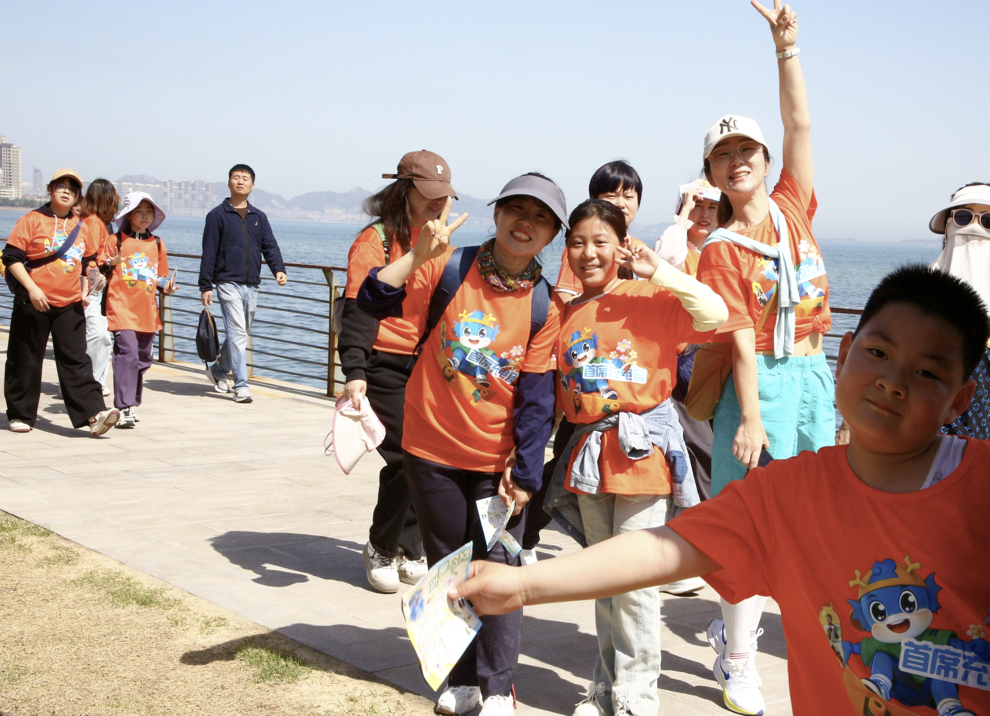 一声鸣笛吹响出发号角,浩浩荡荡的健步队伍正式启程,沿着 4 公里海岸线向前行进。途经滨海步道、九龙湾公园,沿途樱花盛放、海风轻拂,一路风光如画。参与者们或结伴而行、谈笑风生,或驻足停留、欣赏美景,在轻松愉悦的行走中,尽情感受威海这座 “山海之城” 的生态魅力与春日生机。