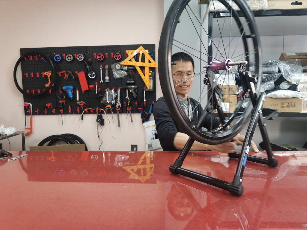 除了定制和改装,店里还提供辅具维修、调试全链条服务,小到轮椅补胎,大到车轮平衡调试,于文涛都亲力亲为。“青岛骑自行车的人少,很多修车店不会修轮椅,我这个店就是残障朋友的辅具4S店。”他说,如今店里不仅服务青岛本地朋友,还有人从外省专程赶来。