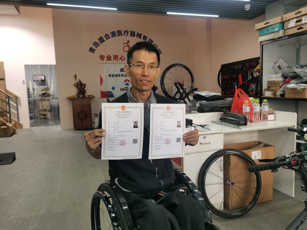 “看,这是我在春节前拿到的证,我现在网约车和巡游出租车都能开!”记者来到市北区金华路45号的涛哥辅具适配青岛体验店,店主于文涛自豪地对记者说。