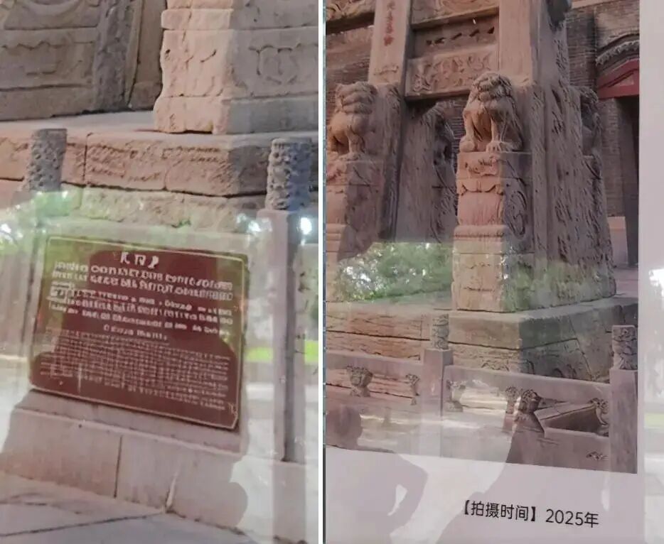 网友称,标明拍摄时间为2025年的岱庙坊彩色照里铭牌出现变体符号,疑似是“AI生图”。(网络图)