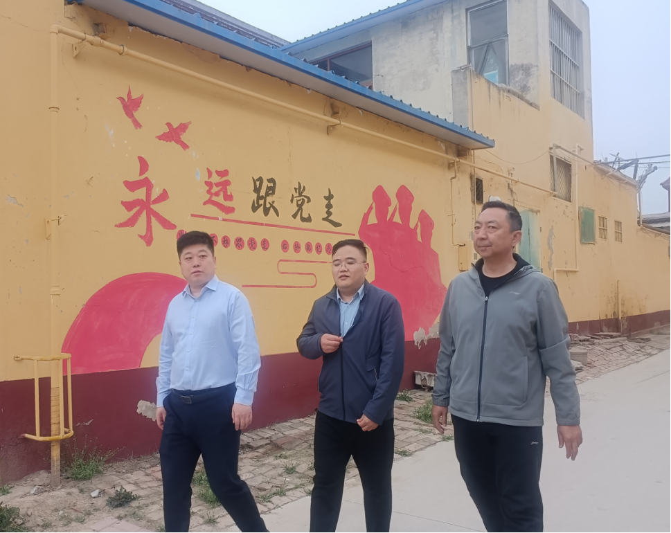 两位第一书记联合中国人寿财险临清支公司经理曹东岳走村入户了解群众生产生活情况。