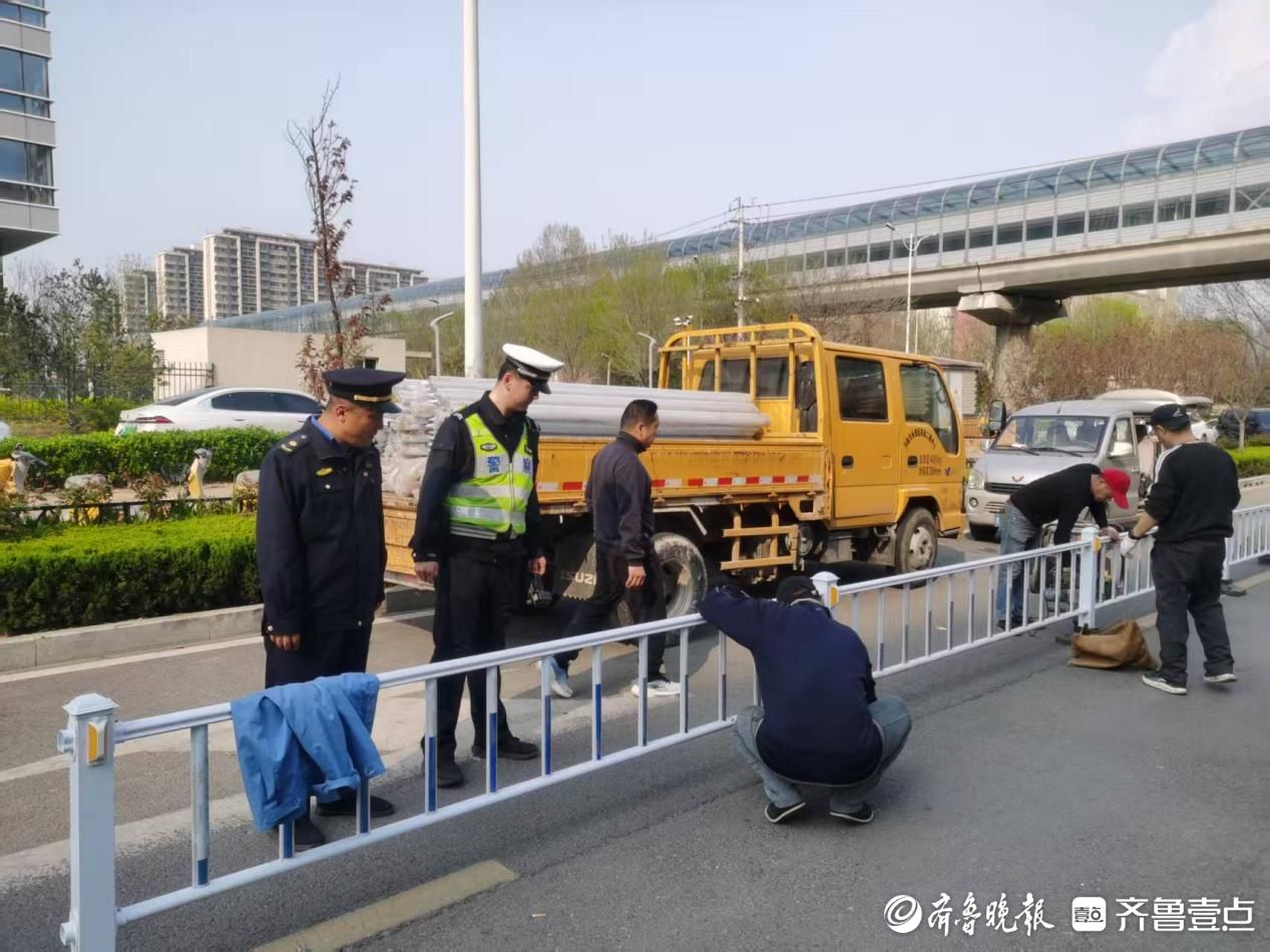 隔离护栏“上线”,长清合新广场周边告别“乱停车”拥堵乱象
