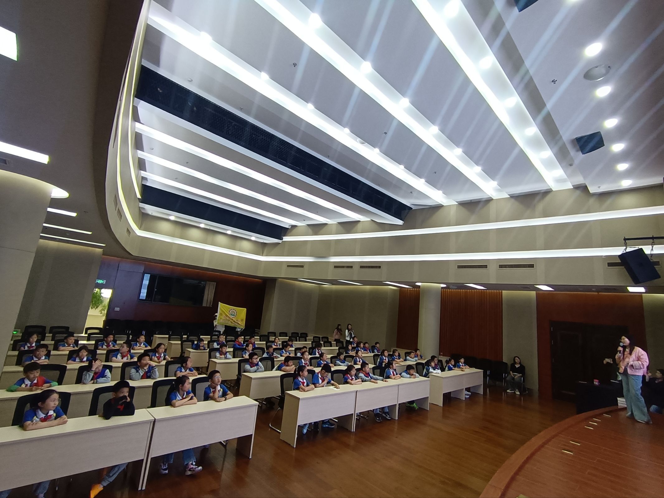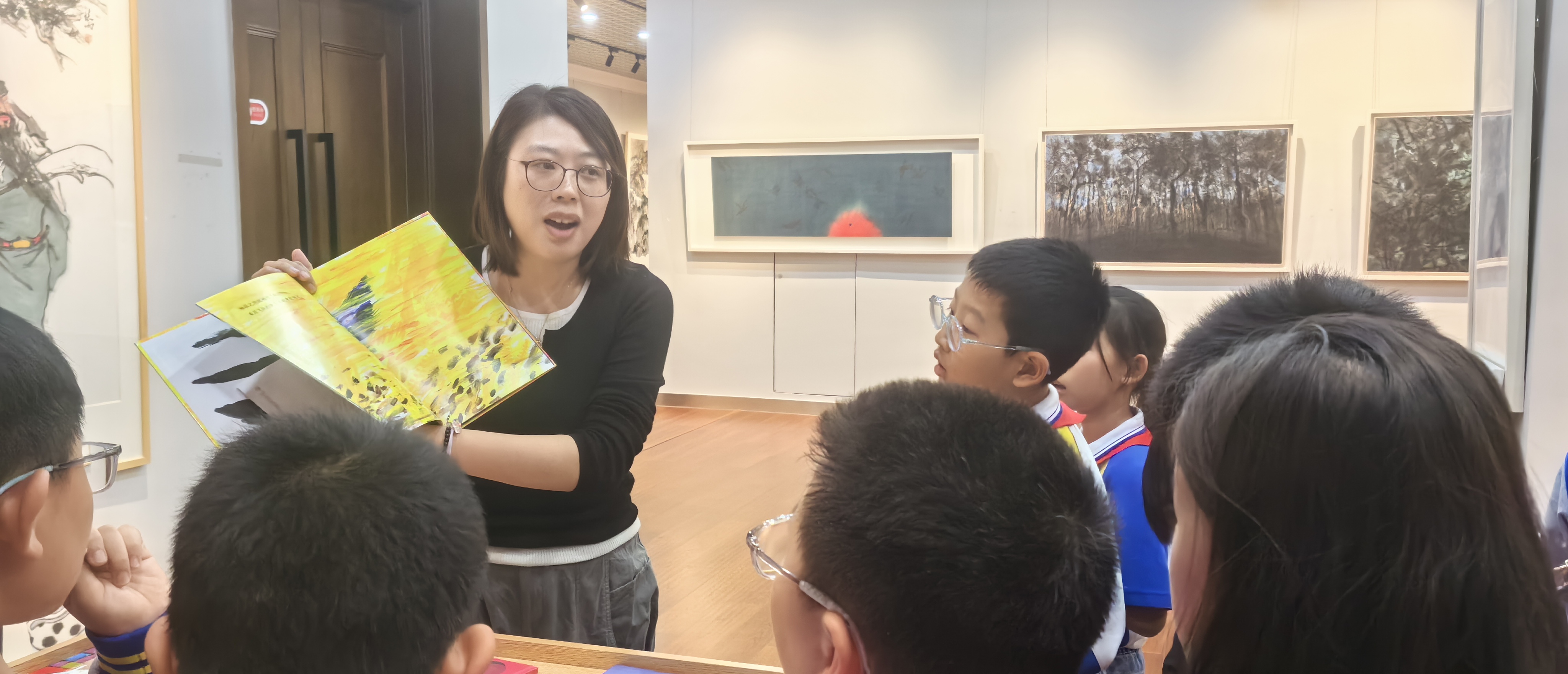 活动现场,同学们循着书籍诞生的轨迹,开启了一场奇妙的研学之旅。在编辑部,编辑老师详细讲解了审稿、改稿、排版对接以及与作者沟通的全流程,同学们认真聆听、积极提问,真切体会到每一本书背后都凝聚着编辑们的严谨与坚守;随后,大家走进专业录音室与演播室,探秘直播分享、书籍推广视频及教学视频的录制现场,直观感受新媒体时代书籍传播的新形式、新魅力;在鲁教艺术馆,各类优秀书画作品错落陈列,同学们驻足观赏、轻声交流,在笔墨丹青中感受艺术之美,接受美育熏陶,进一步提升审美能力;最后,资深编辑在大会议室开展专题分享,围绕“奇妙科学大揭秘”系列图书,生动讲解“一本书的诞生”,与同学们现场互动,共同探索科普出版的独特魅力,现场氛围热烈而活跃。
