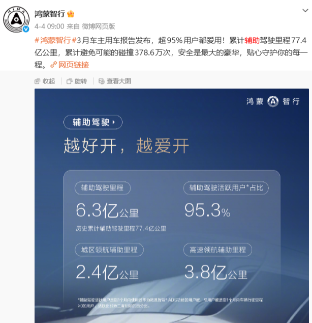 车企都开始晒智驾数据了 华为乾崑:辅助驾驶累计里程超100亿公里