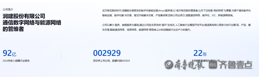 润建股份是领先的数字化智能运维(Alops)服务商,以“做万物互联的管维者,让天下没有难用的网络”为愿景,为客户提供数字化智能运维、数字化解决方案、智慧节能解决方案、产品集成等,目前公司业务已涵盖通信网络、数字化、IDC、新能源等领域。