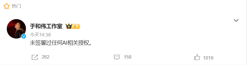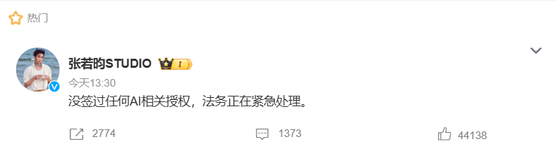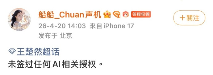 紧接着,于和伟、张若昀、王楚然等多位被网络提及也在入驻之列的艺人,紧急发布声明否认AI授权。