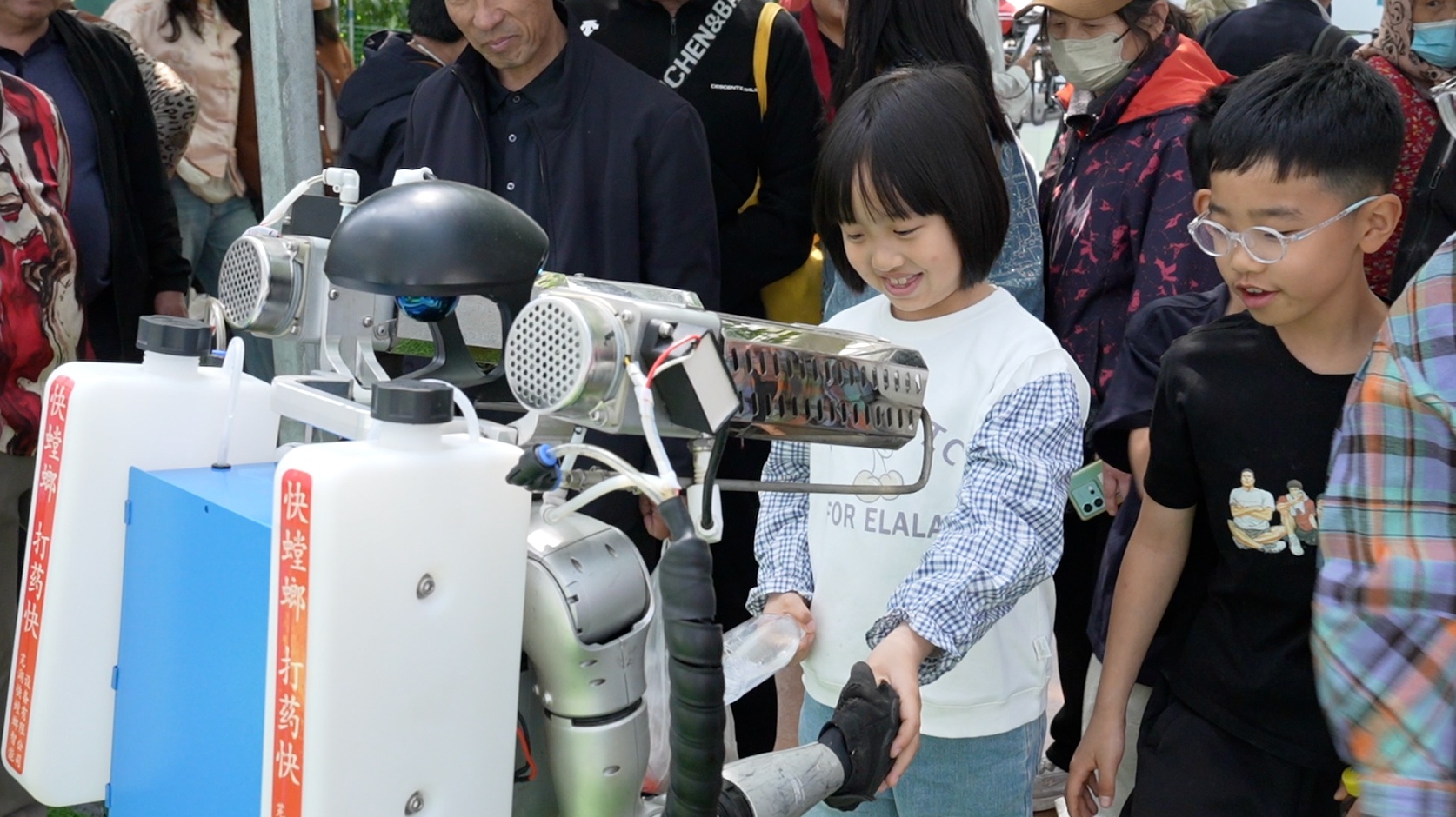 在芜湖快螳螂公司展位,一台打药机器人正灵活走动作业。华北大区销售经理胡新清告诉记者:“它采用超微雾化技术,药液利用率高,单日作业能力达百亩,还能有效减少药液飘移,减轻环境负担。”