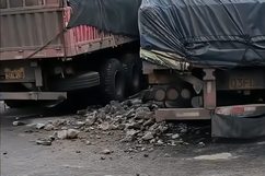 这位商家介绍,两辆货车一个装石头,一个装白糖,事故没有造成人员伤亡。今天上午交警已经前来处理事故,看情况要将货车拖走,后续赔偿问题会由保险公司处理。