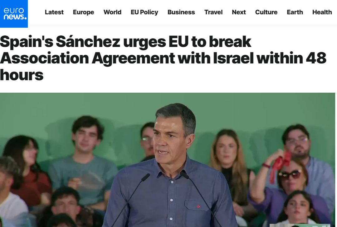 此前,西班牙方面曾多次呼吁欧盟审查或暂停该协议,理由是以色列在加沙地带及黎巴嫩等地的军事行动“公然违反”国际人道主义法。桑切斯表示,“一个违反国际法和欧盟原则的政府不能成为欧盟的合作伙伴。”