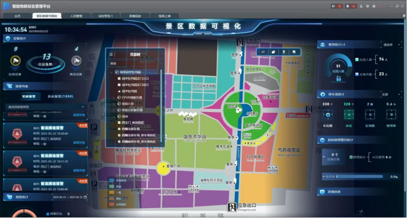 目前,已经对景区实现了人流、车流实时监测和异常预警,依托AI技术,精准识别拥挤、滞留等安全风险;全面部署应急广播和一键求助系统,游客遇到困难可快速求助,大幅提升景区安全保障能力;智慧景区综合管理平台则实现了停车、票务等各类信息的集成与统一平台调度,让游客在沉浸式欣赏花海盛景的同时,享受便捷、安全、贴心的智慧旅游服务。