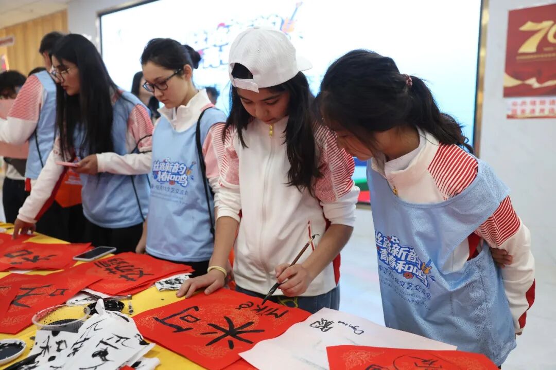 书法体验环节,老师围绕汉字“和”展开讲解,展示“和”字的演变脉络,进而阐释“和而不同、美美与共”的文化内涵——“和”字既表达了中国与世界相处的模式,也是中华文化的核心追求之一。