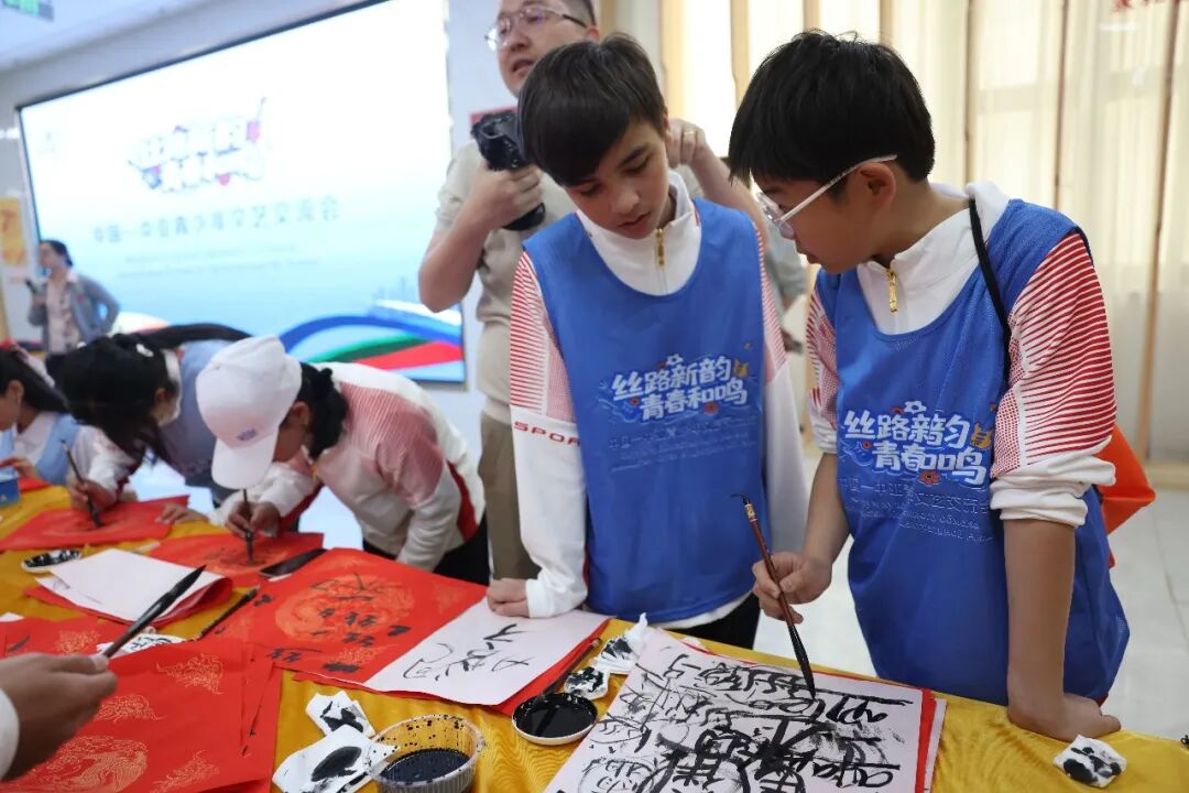 4月19日,“丝路新韵 青春和鸣”中国—中亚青少年文艺交流会书法体验现场,来自中国与中亚四国的青少年以笔为媒,在中国字的一笔一画中对话文明,在真诚的互动中缔结友谊。其中,中国山东女孩谢澄阳与乌兹别克斯坦女孩米可、岳普湖女孩彭雅馨与塔吉克斯坦少年苏喻哲的互动,成为这场跨文化交流中最动人的注脚,生动诠释着文明互鉴的青春力量。