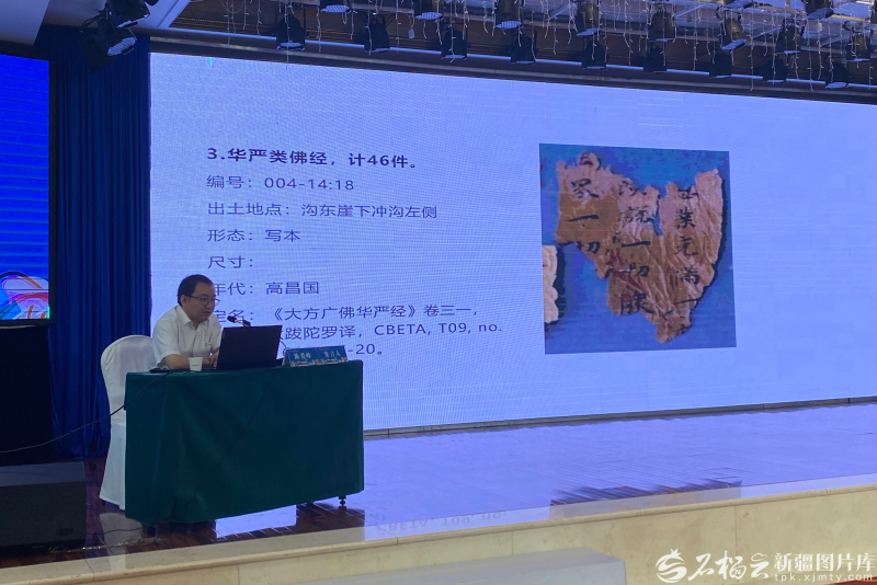 4月18日,吐鲁番学研究院副院长陈爱峰在“繁采扬华——第三届吐鲁番学研究生工作坊”进行题为“吐峪沟石窟出土文书整理与研究新进展”的发言。石榴云/新疆日报记者 赵梅摄