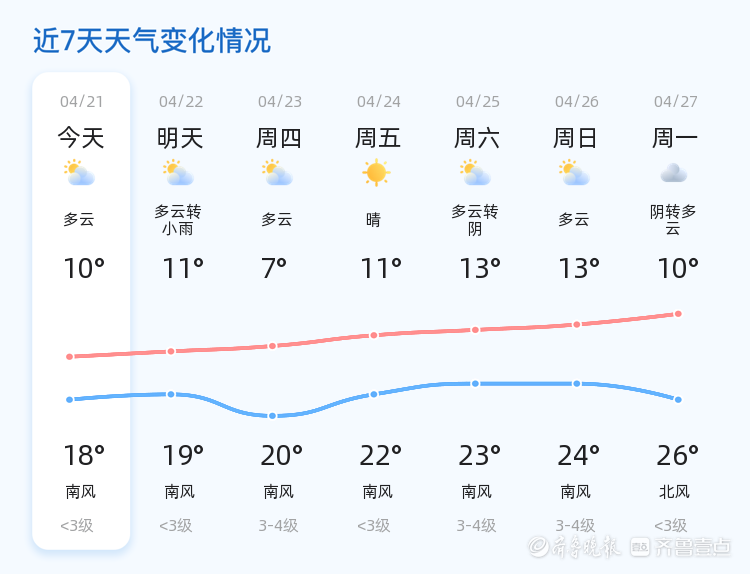 今日是4月21日,星期二,农历三月初五。泰安市今日天气多云,气温在10℃至18℃之间,东北风1级,空气湿度79%,PM2.5指数为63。各区天气情况基本一致,均为多云,气温适中,适合户外活动。