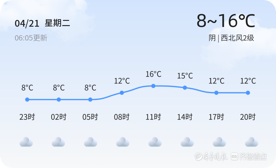 今天是2026年4月21日,农历三月初五,星期二。日照市今天天气阴沉,气温在8℃至16℃之间,西北风2级,空气湿度70%。目前空气质量状况为良好,适合户外活动。但随着天气变化,建议市民出行时携带雨具,注意保暖,防范降雨带来的不便。今天的PM2.5指数为90,属于良好等级,对人体健康无明显影响。