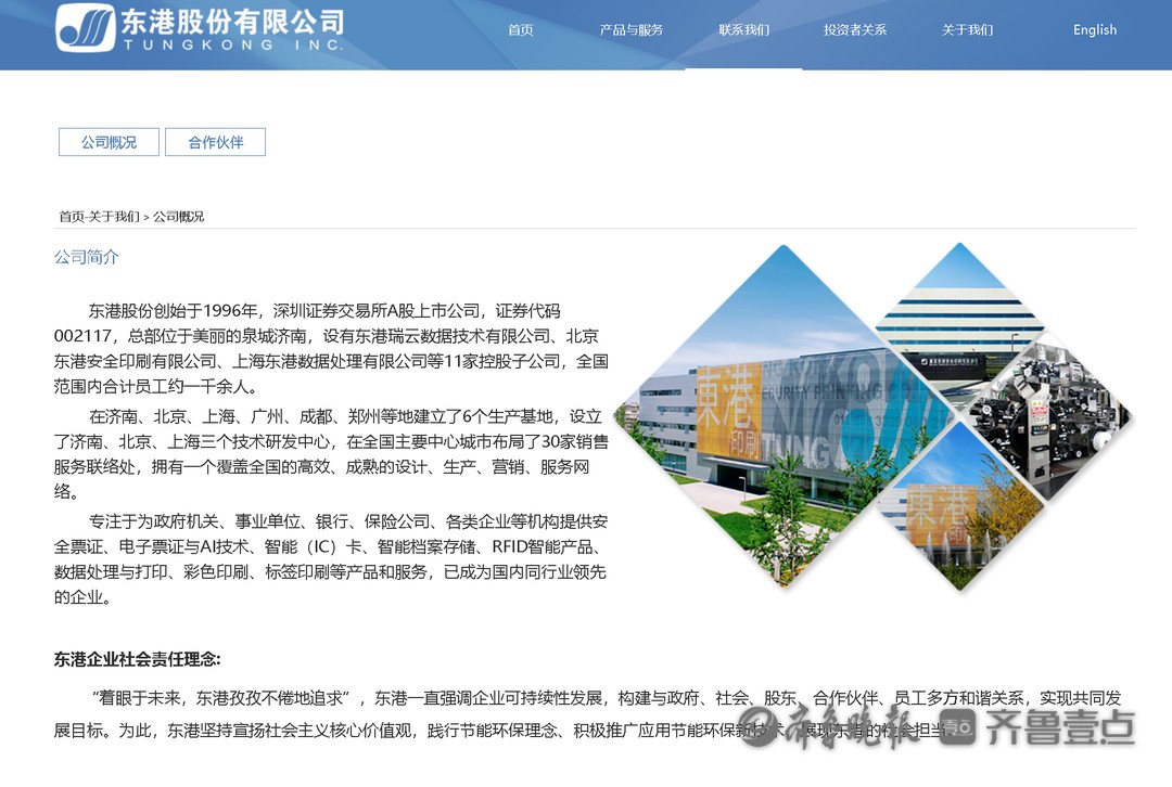 东港股份创始于1996年,深圳证券交易所A股上市公司,证券代码002117,设有东港瑞云数据技术有限公司、北京东港安全印刷有限公司、上海东港数据处理有限公司等11家控股子公司,全国范围内合计员工约一千余人。