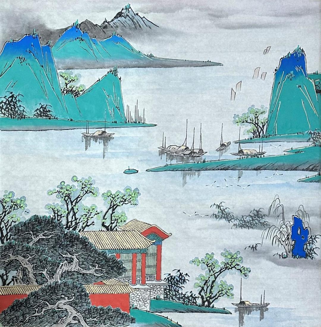 《青山隐隐水悠悠》78×78cm