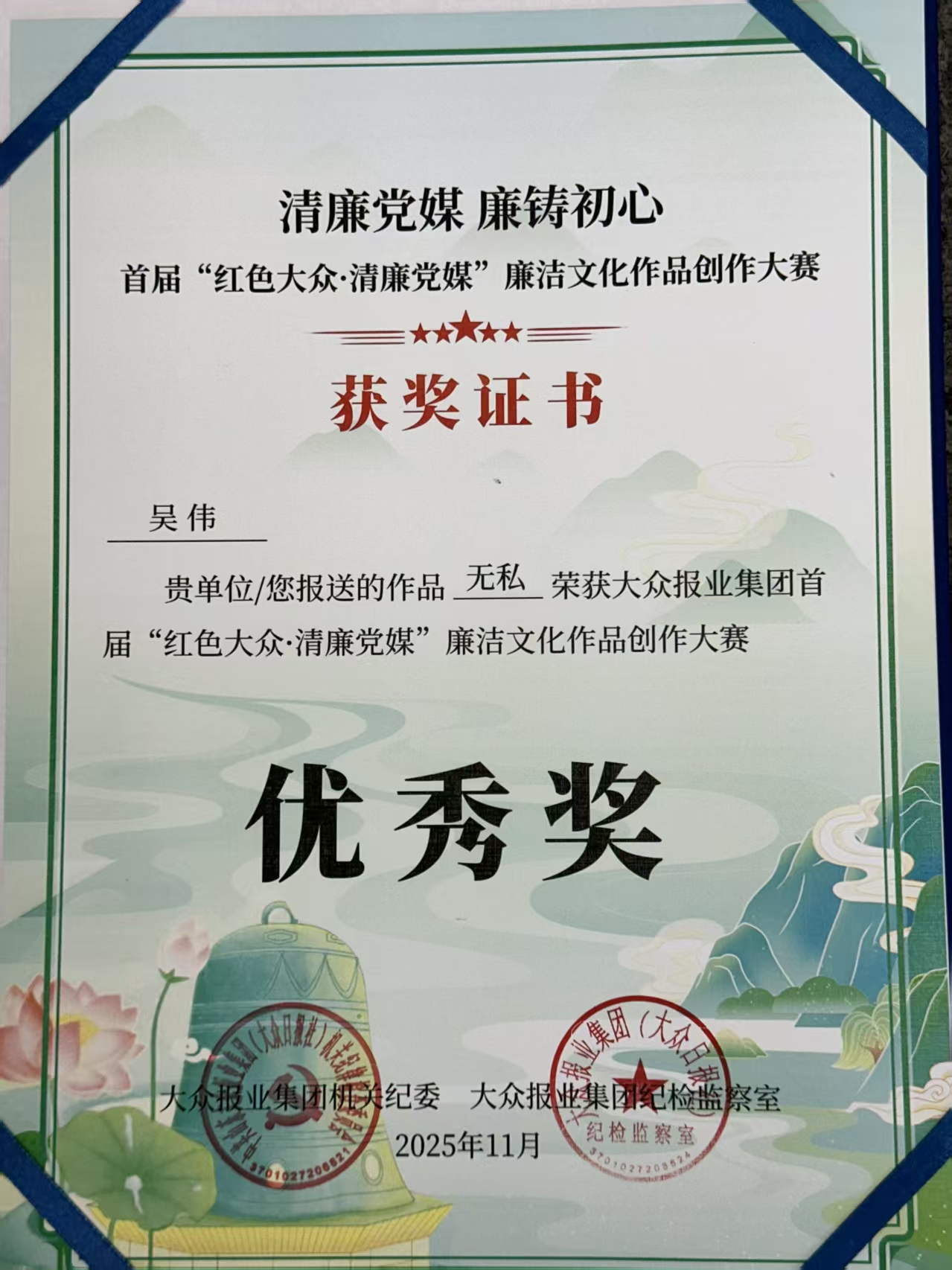 漫画《AI无私》及作品获奖证书