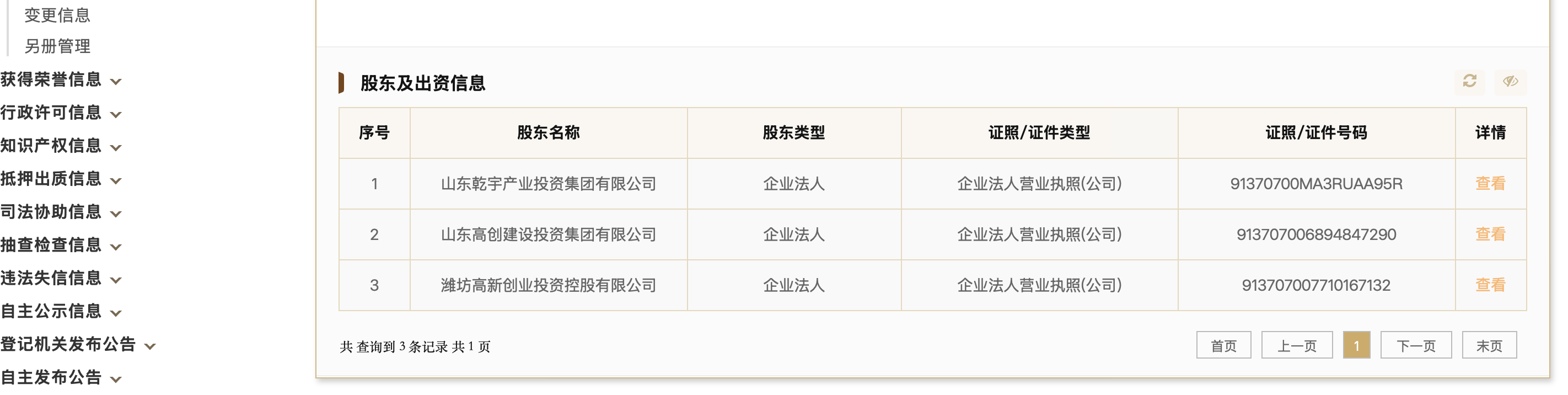 国家企业信用信息公示系统显示,山东高创产业发展投资集团(下称“山东高创产投”)近日发生股东变更,控股股东山东高创建设投资集团持股比例由99.69%降至66.69%,新增股东山东乾宇产业投资集团有限公司,持股比例33%。