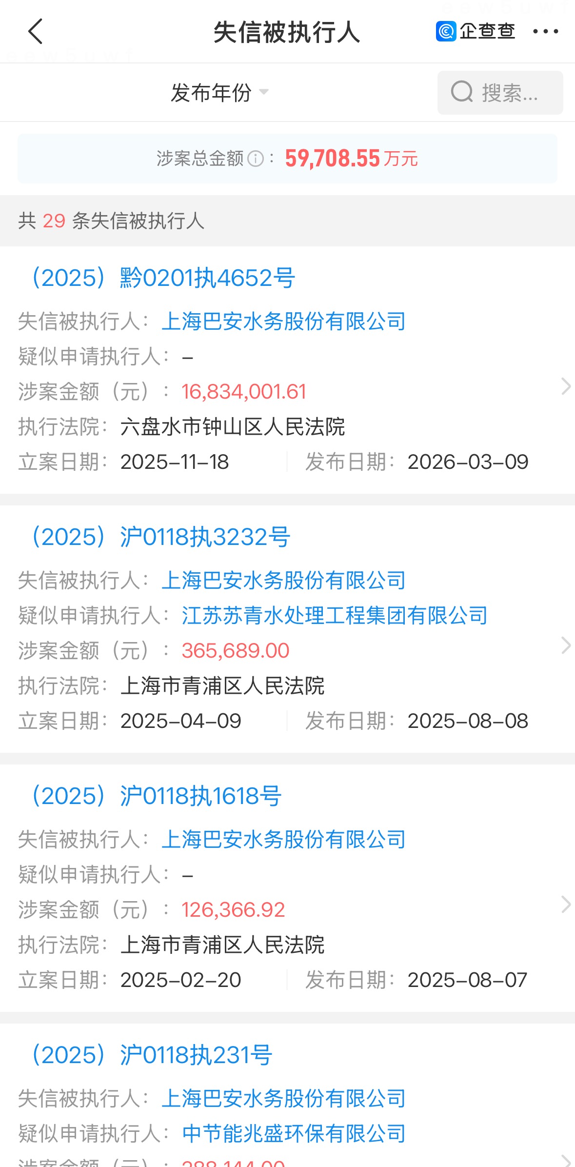 经济导报记者注意到,山东高创建设投资集团在上海参股的公司——上海巴安水务股份有限公司,2024年8月从深交所创业板退市(股票简称“*ST巴安”,证券代码:300262.SZ)。企查查信息显示,该公司目前有29条失信被执行人信息,涉案总金额达5.97亿元。