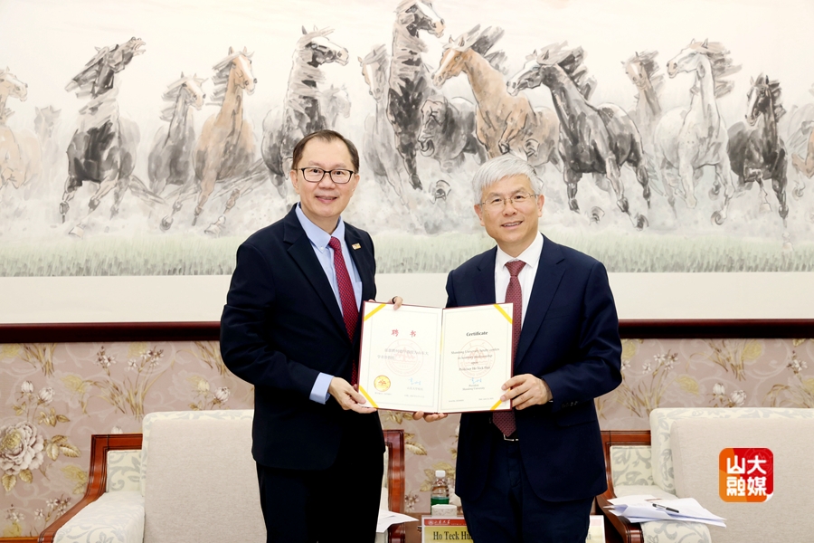 4月18日,南洋理工大学校长何德华率团访问山东大学。山东大学校长李术才会见代表团,并为何德华颁授山东大学名誉教授证书。