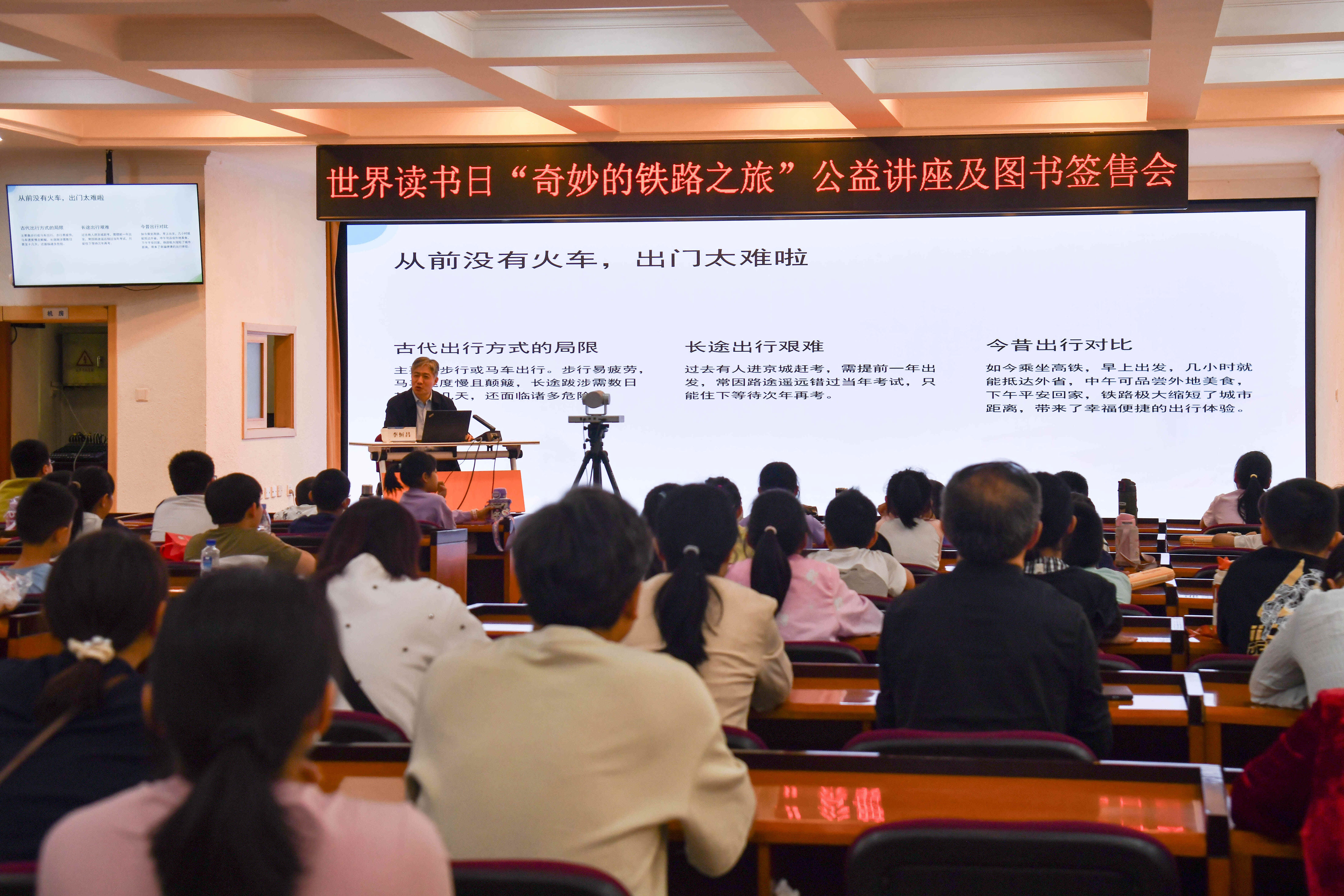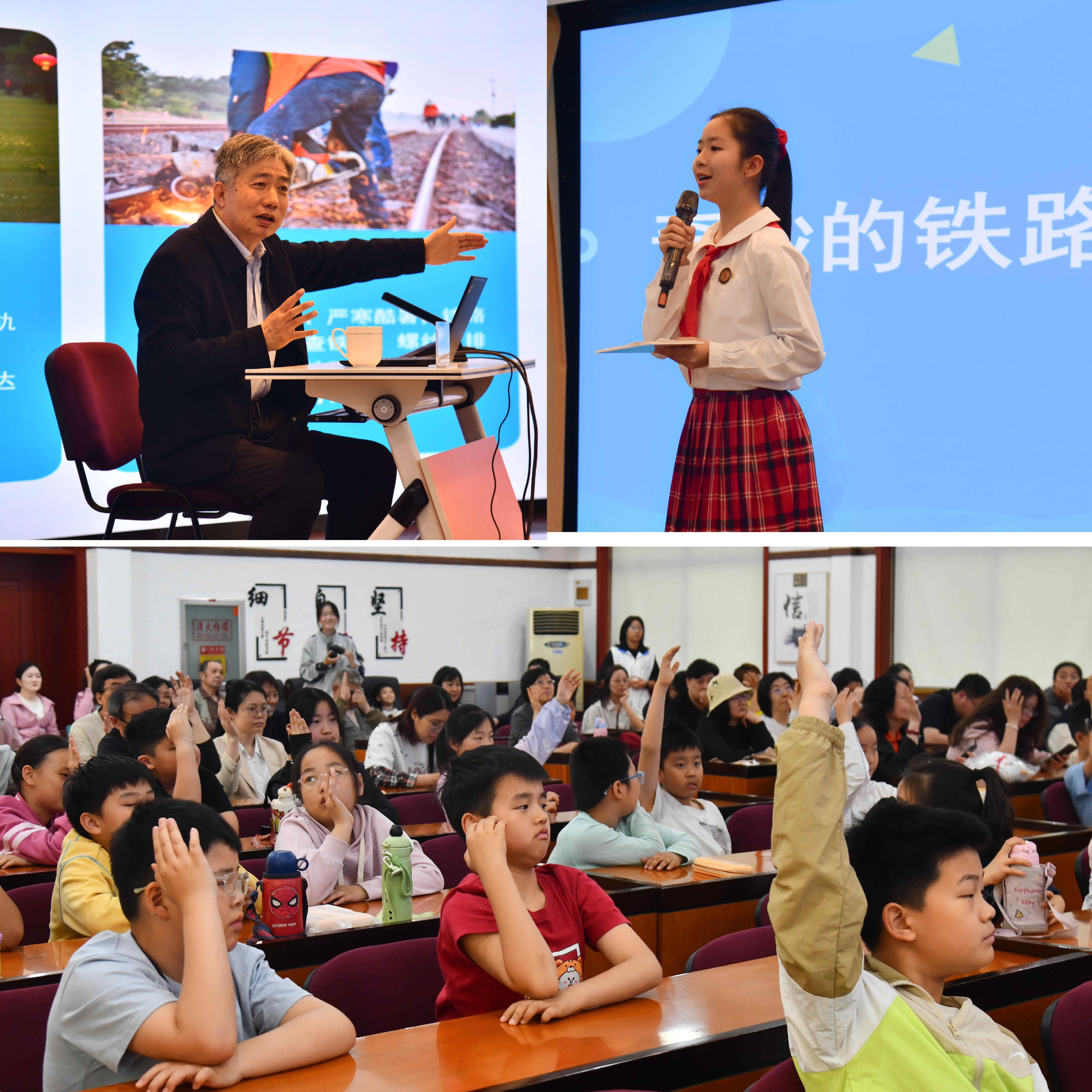 除了线上答题的头脑风暴,线下阅读活动同样干货满满。在山东省青少年宫举办的“奇妙的铁路之旅”公益讲座上,作家李恒昌倾情授课,以《铁道线上的“国旗班”》为题,通过生动讲述与趣味互动,为60组亲子家庭呈现了铁路发展的不凡历程、铁路人的奉献故事与中国铁路的辉煌成就,也让一颗颗关于坚守、创新与家国情怀的种子悄然在孩子们心中生根发芽。