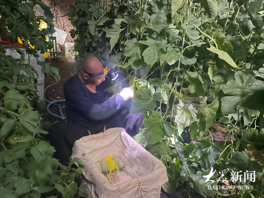 “连轴转40个小时,一直盯着收瓜,身体很疲惫,但心里还是美滋滋的,看着丰收的果实,很有成就感。”田斌告诉记者。