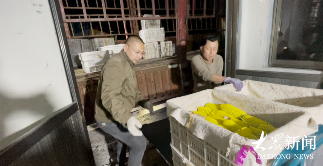 田斌夜间在农场装车卖瓜。晚上摘瓜、卖瓜,可最大程度保鲜,减少水分损失。
