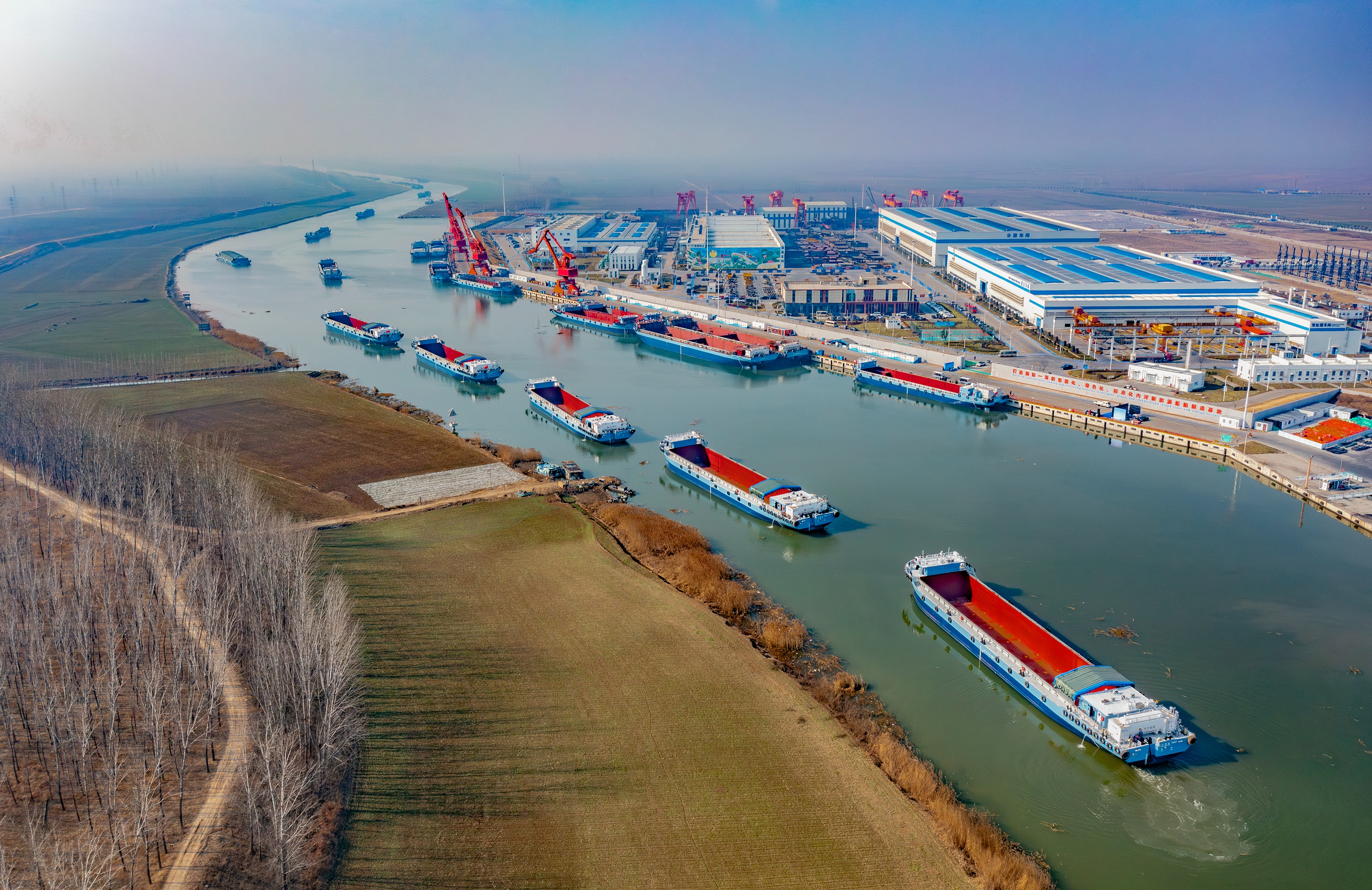 从省内首支规模化成建制纯电动货船船队投入运营,到国内首艘出口纯电内河集装箱船成功下水,济宁新能源船舶产业已实现从试点示范到规模化、国际化的跨越。“首艘出口纯电内河集装箱船年运输量超5万标箱,可减少二氧化碳排放778吨。”山东新能船业有限公司董事长张强介绍,契合海外客户零碳航运需求,我国自主研制的绿色内河船舶驶向国际市场。