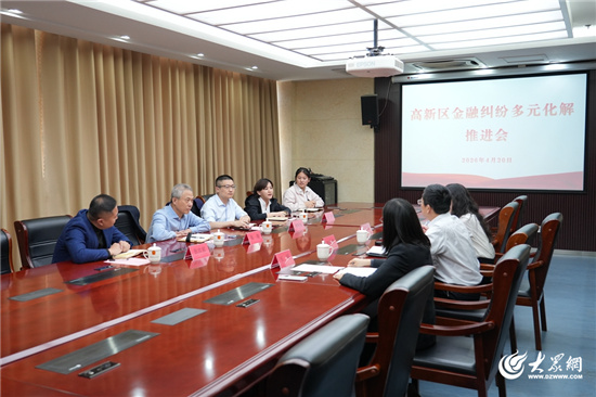 4月20日,淄博高新区金融纠纷多元化解推进会在淄博高新区法院召开,淄博市金融消费权益保护协会专职副会长、秘书长张旭,淄博高新区社工部政法统筹科科长张汝前,众合调解室负责人安晓及相关负责同志;淄博高新区法院副院长李爱学、相关部门(团队)负责人参加会议。