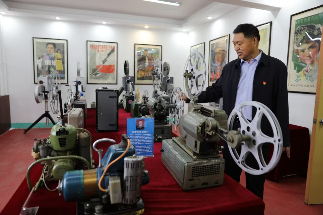 守在这里的人,叫张俊华,六十三岁,是这儿的馆长。他很健谈,腰很直,眼睛看人时,有种土地般的实在。手指抚过一台暗绿色的机器,金属外壳沁着凉意。“这是‘老五四型’,1954年产的,咱国产的第一批放映机。”声音不高,像在对胶片说话。指尖又轻轻点了点旁边铁盒里盘绕的胶卷,“这是《闪闪的红星》,保存得还行。”他说这话时,眼里的光,和银幕上反射的光一样,安静,执着。