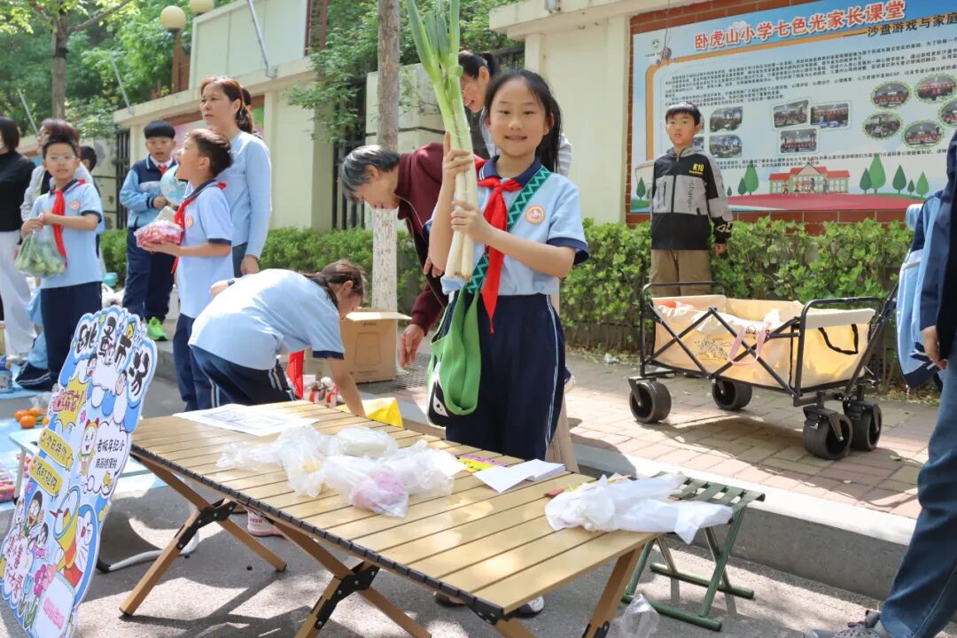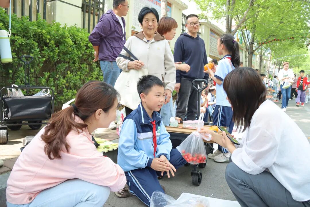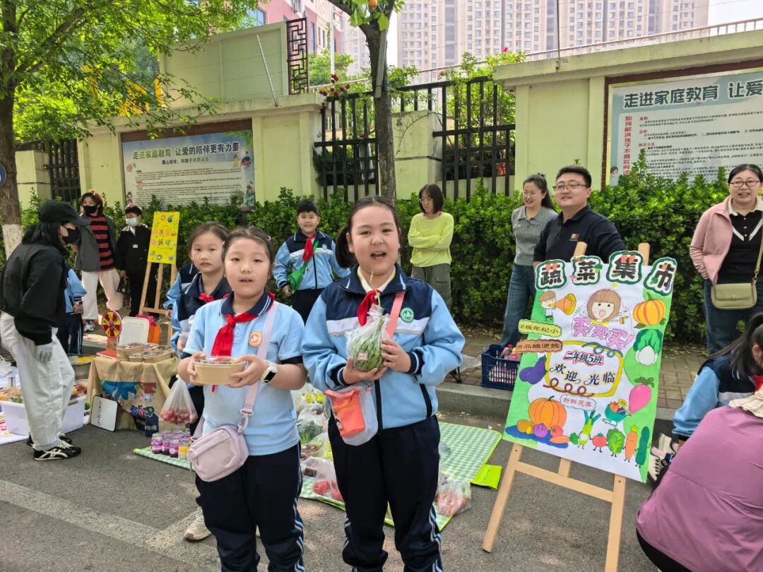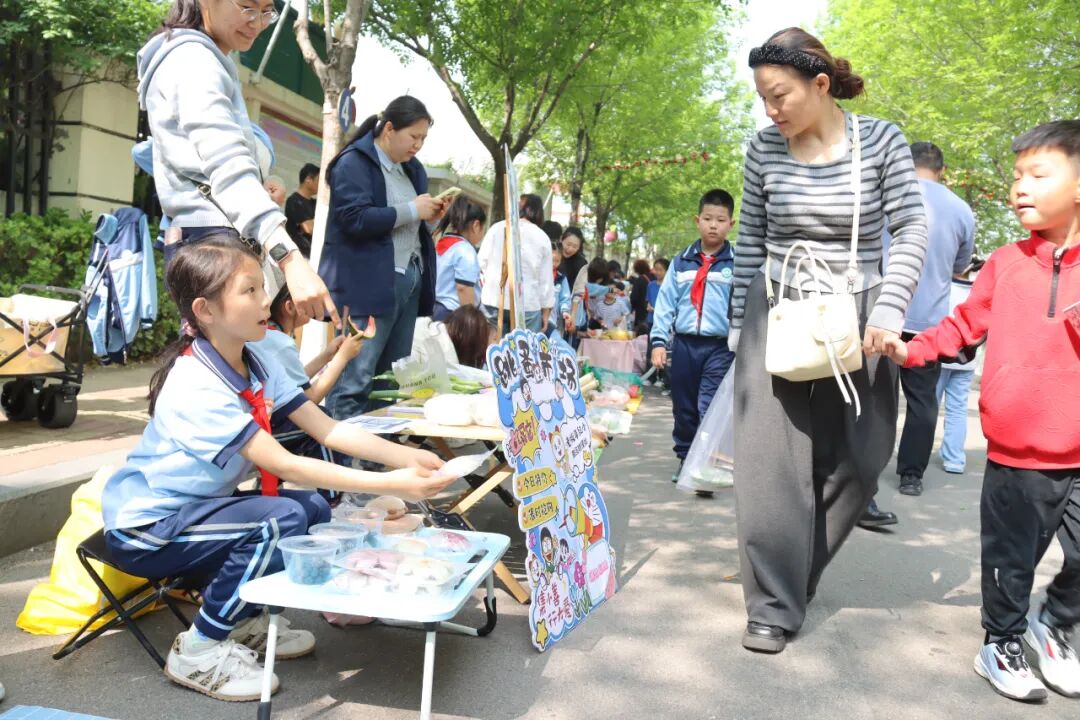 “新鲜的蔬菜,走过路过,不要错过!”“阿姨您尝尝,可甜了!”4月18日上午,卧虎山小学“知秋巷”上一片欢声笑语,“养正大集”热闹开市。二年级“馨竹级部”15个班级的60个主题摊位沿街排开,学生化身“小掌柜”,在真实的买卖场景中体验劳动乐趣、锻炼沟通能力。