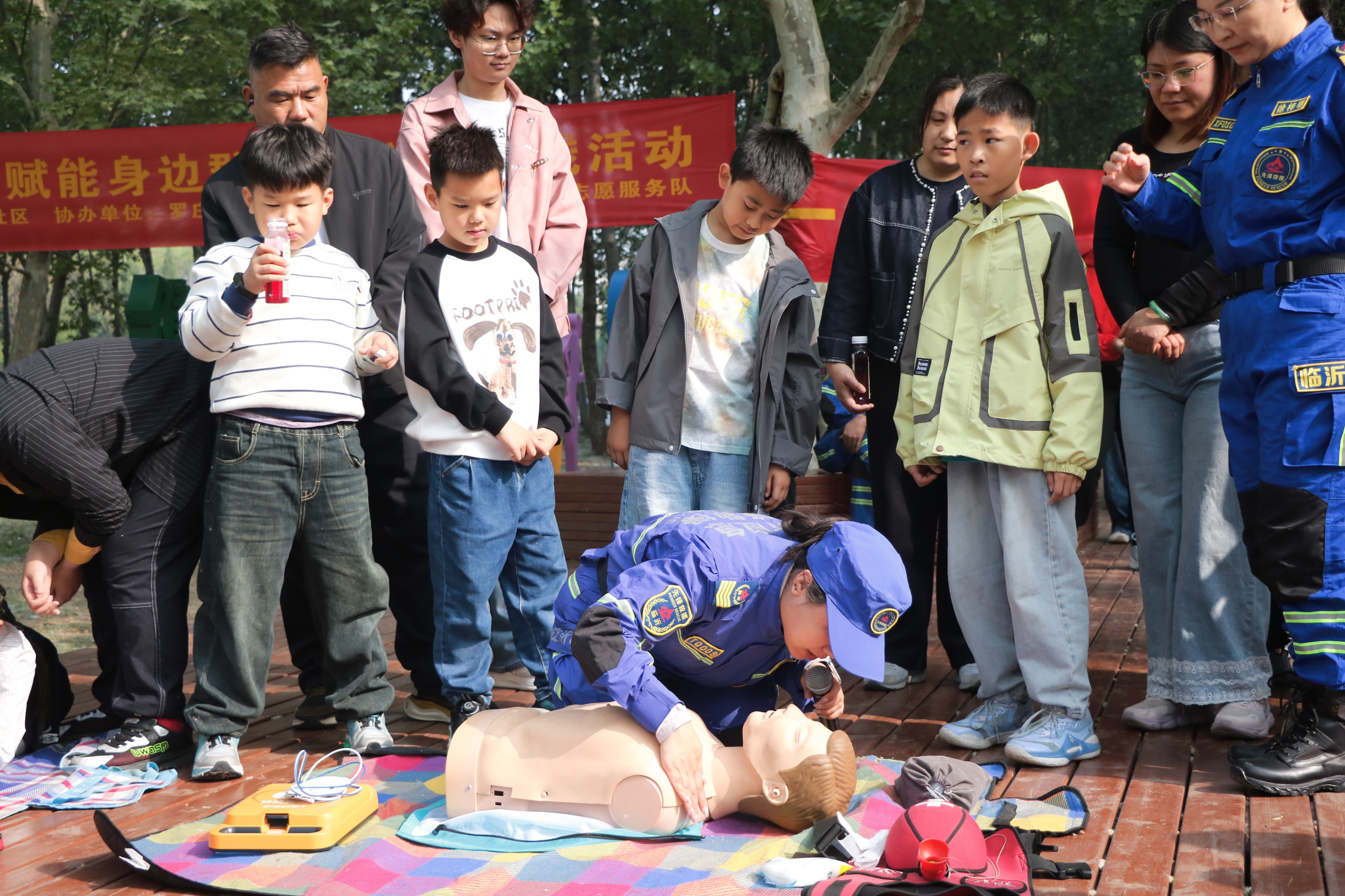 为了让善意有能力延续,活动特别设置了“救在身边”应急救护宣传教育环节。罗庄区先锋应急救援队的专业队员现场演示了心肺复苏(CPR)和AED(自动体外除颤器)的使用方法。