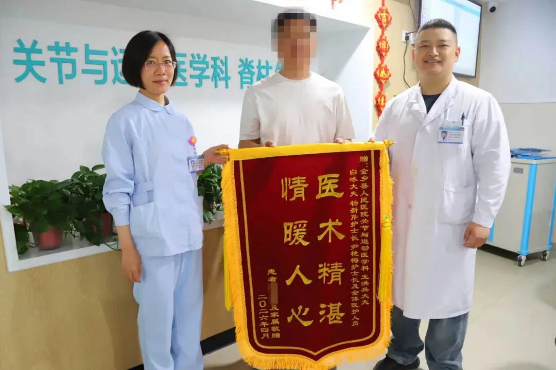这面锦旗不仅是医患情深的生动写照,更是对关节与运动医学科全体医护人员的莫大鼓励。未来,金乡县人民医院关节与运动医学科将继续秉承"以人为本,患者至上"的理念,以精湛的技术和贴心的服务,为更多患者解除病痛,为全县人民的健康保驾护航。.