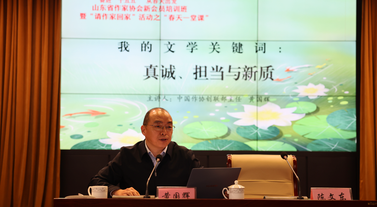 本次新会员培训班暨“请作家回家”活动在为期四天的时间里,先后开展13场文学活动,策划精细、形式多样、课程丰富、内容充实、亮点纷呈。4月13日晚,组织全体学员集中学习《山东省作家协会章程》,强化会员意识、明晰责任担当。14日上午,举行培训班开班式暨“请作家回家”欢迎仪式,中国作协创联部主任黄国辉出席并为新会员代表颁发会员证,省作协党组书记、副主席赵艺丁致辞,党组成员、副主席曲艺、陈文东出席。开班式后,黄国辉以《我的文学关键词:真诚、担当与新质》为题讲授“开班第一课”,为新会员指明创作路径、砥砺初心使命。14日下午,省委党校教授王晓文围绕习近平文化思想作“春天一堂课”专题辅导,系统阐释新时代文化建设的核心要义。随后,全体学员走进山东文学馆,进行“走进文学史”现场教学,在沉浸式体验中感悟文脉传承、汲取精神滋养。14日晚,举行“文学自由谈”座谈交流会,省作协创联部全体人员与学员面对面沟通、心贴心交流,精准回应会员关切。