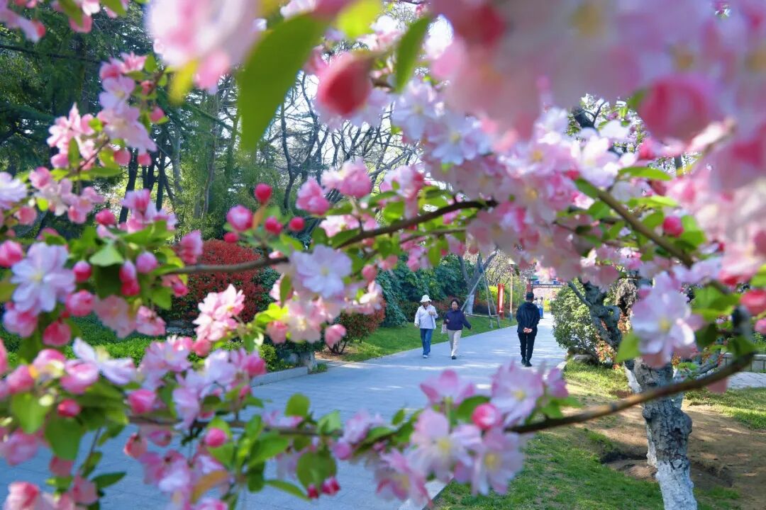 近日,威海环翠环翠楼公园的海棠花已进入最佳观赏期,成为市民就近赏春的首选之地。