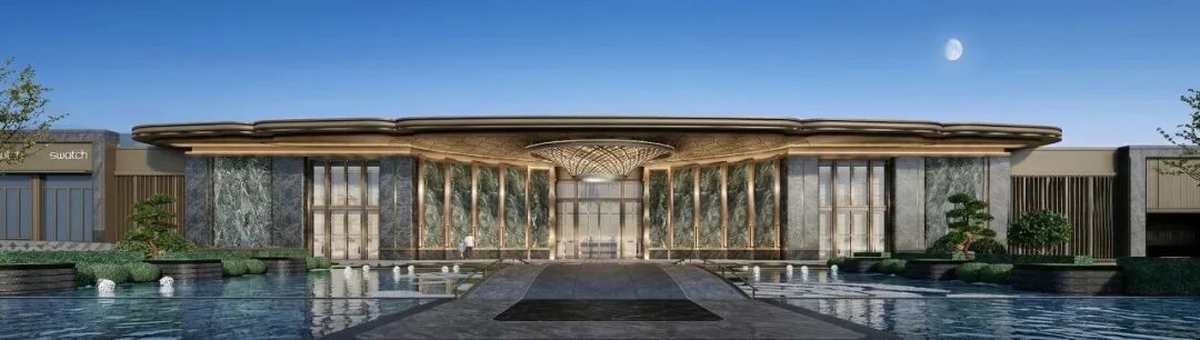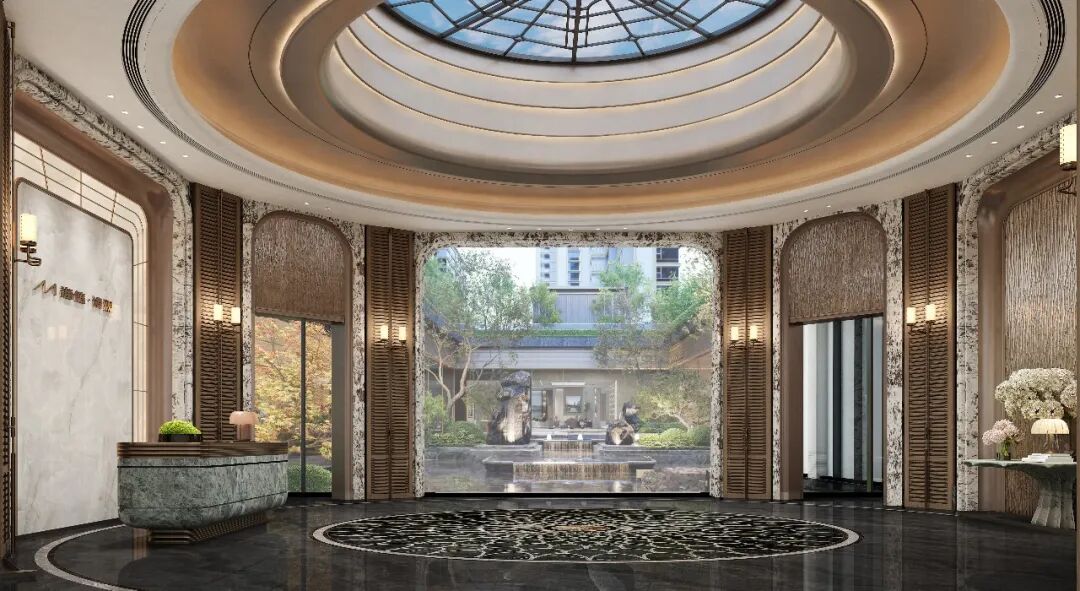 建筑设计深研品质美学,于细节处雕琢高阶质感。外立面臻选铝板材质,香槟金的温润雅致与高级灰的沉稳克制和谐相融,勾勒出优雅大气的建筑轮廓。约60米的奢阔府门,是对归家仪式感的最佳诠释。项目选用进口奢石对称排布,鎏金顶铝板门头,融入天圆地方的传统形制,并精心打造星级酒店式入户大堂,将中式礼序与当代美学完美融合,层层递进间,让业主感受到每一步归家的尊崇体验。