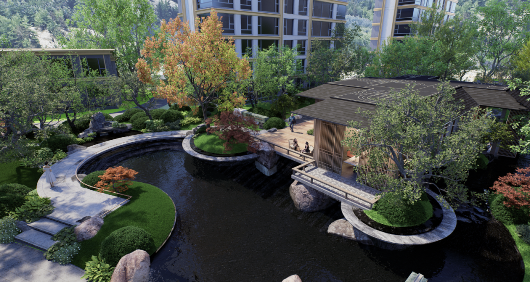 海信境观的园林设也尽显东方美学之绝妙。以“九曲十境 沐风观澜”为核心理念,深度融合青岛独有的山海意趣与东方雅韵。以九曲动线为脉、十重景致为骨,把东方礼序、山海文脉与全龄生活需求深度融合,为业主打造了步步观澜、处处藏境的沉浸式景观园林。